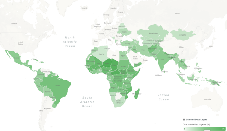 Según la ONU, debido a la pandemia se espera que en la próxima década haya 13 millones de matrimonios infantiles adicionales, de los cuales 4 millones se producirán en los próximos dos años. Este número se suma a las 12 millones de niñas que son casadas anualmente. El siguiente mapa muestra la prevalencia de matrimonio infantil en el mundo.