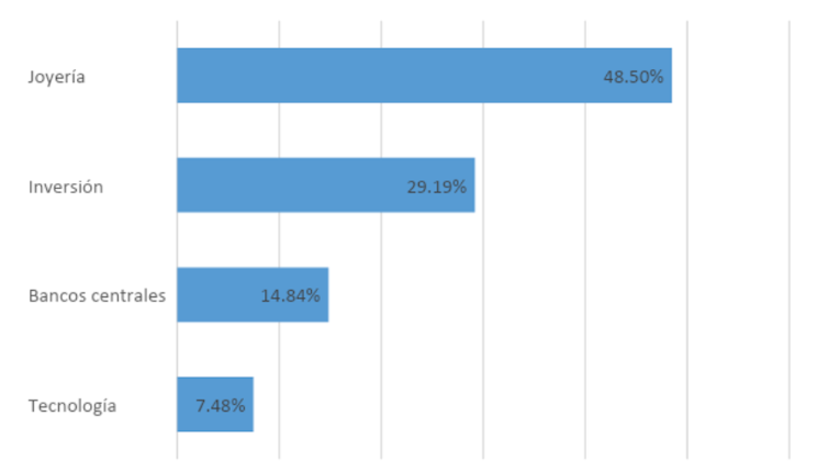 Demanda global de oro por sector, 2019