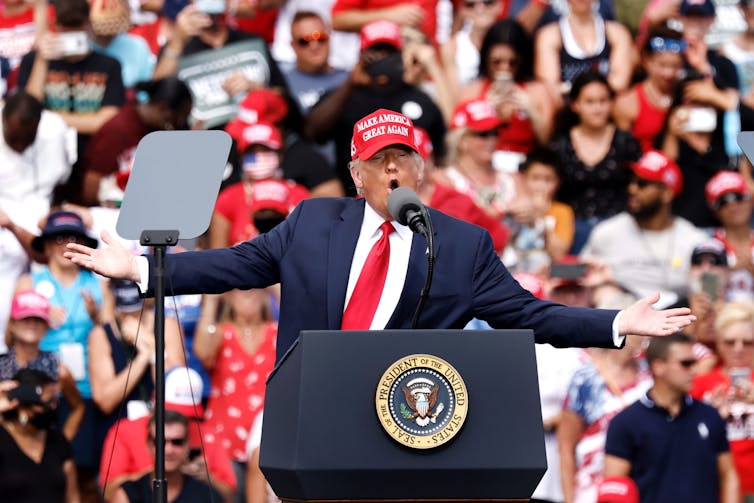 El actual presidente y candidato republicano Donald Trump durante un acto de campaña en Tampa, Florida, el 30 de octubre de 2020. Shutterstock / StratosBril