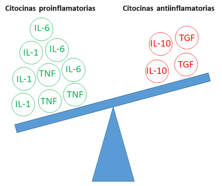 Existen unas cuantas y, mientras que unas llevan el mensaje de que hay que ser más enérgico en la respuesta (son proinflamatorias, p. ej. IL-1, IL-6, TNF, MCP-1), otras se encargan de decir “ya es suficiente, se acabó la batalla” (son antiinflamatorias, p. ej. IL-4, IL-10, TGF).