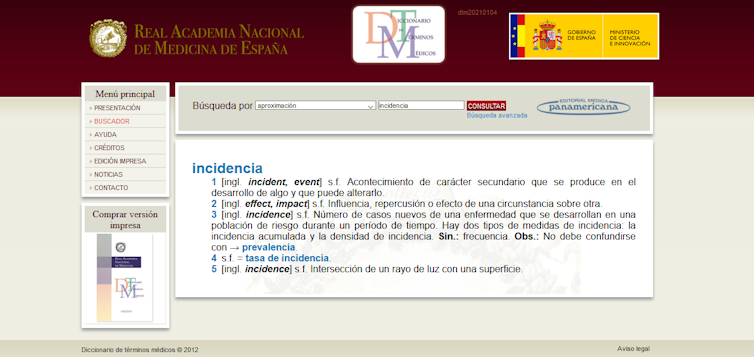 • El Diccionario de términos médicos es una de ellas. Perteneciente a la Real Academia de Medicina de España, en su web se aclara que esta versión electrónica “contará con actualizaciones periódicas, correcciones y mejoras”, lo que nos garantiza estar al día sobre el significado de cualquier término médico asociado a la pandemia.
