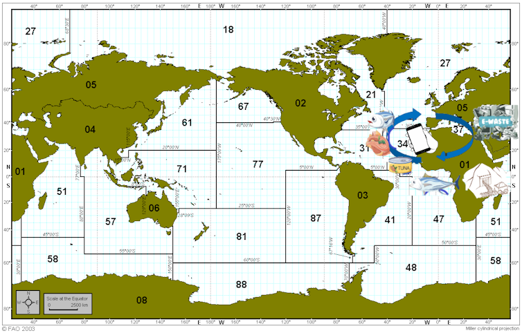El pescado capturado en aguas africanas entra en el comercio mundial y se puede vender en cualquier lugar, apareciendo en el mercado europeo. Los acuerdos de asociación de pesca sostenible de la Unión Europea permiten a los barcos de la Unión capturar atún mientras migra a lo largo de las aguas africanas. Por tanto, si la contaminación africana por metales pesados llega al atún en mar abierto a través de las plumas de los ríos y la cadena trófica, Europa podría estar consumiendo la contaminación por metales pesados a través de la ingesta de especies marinas capturadas en aguas africanas.