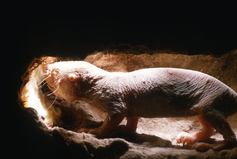Algo parecido ocurre con la rata topo lampiña africana (Heterocephalus glaber), que puede sobrepasar los treinta años de vida. Esto es, casi ocho veces más de lo esperable en un roedor tan pequeño. Tales ratas, de hábitos sociales muy elaborados, evitan la exposición a los rayos ultravioletas al vivir en galerías. Además, en sus tejidos muestran altas concentraciones de una variante de masa molecular elevada del ácido hialurónico. Eso permite que su piel sea muy flexible (algo necesario cuando se deambula por galerías) y, como efecto colateral, proporciona una gran resistencia al cáncer y evita la sarcopenia (atrofia y perdida de masa muscular) con la edad.