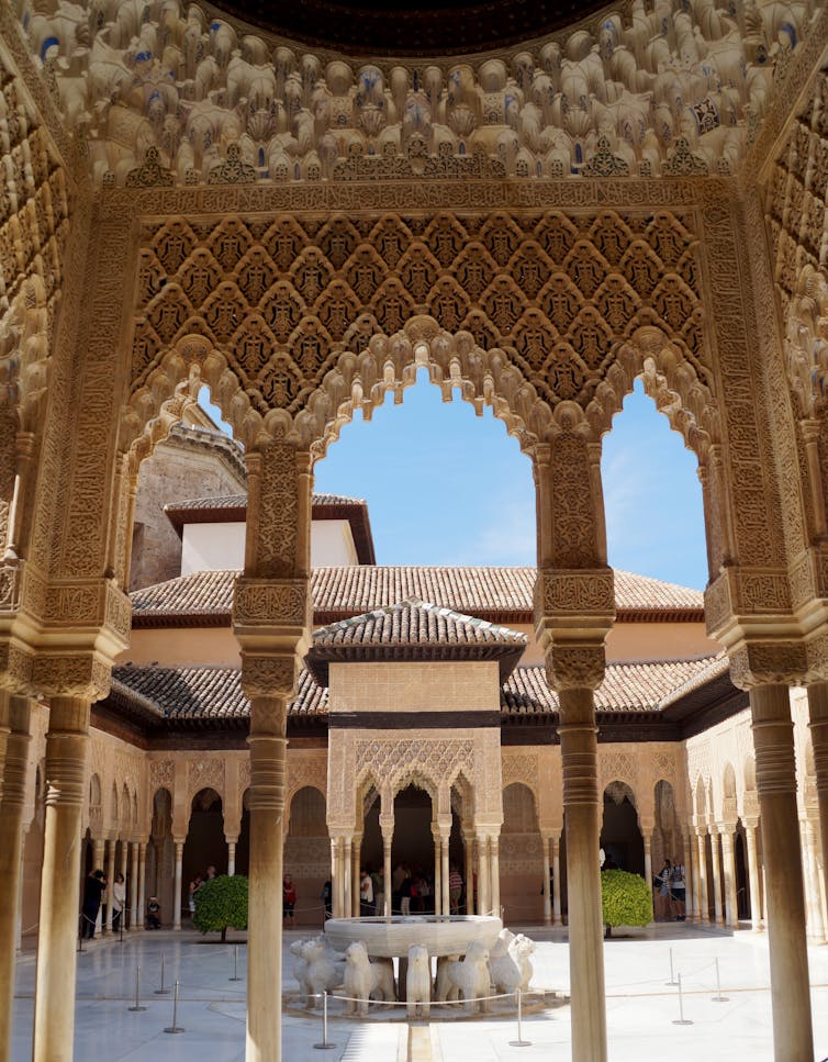 Ningún otro rincón de la Alhambra de Granada, incluida en la lista de Patrimonio Mundial de la UNESCO, despierta tanto interés como el Patio de los Leones. Cuenta con una elegante galería perimetral apoyada sobre 124 columnas de mármol que se agrupan con sutiles ritmos. En el centro de sus lados menores sobresalen dos templetes que son auténticas obras maestras del arte nazarí.