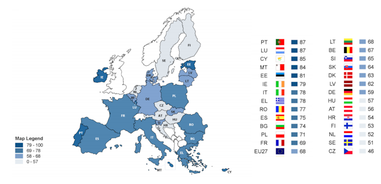 Se podría titular: «El 68% de los europeos estarían de acuerdo con la afirmación de que la UE tendría que tener más competencias para la gestión de crisis como la derivada de la pandemia”. Pero las diferencias de opinión entre países son muy grandes. En esta pregunta, los ciudadanos de los países frugales se sitúan a la cola de la lista.