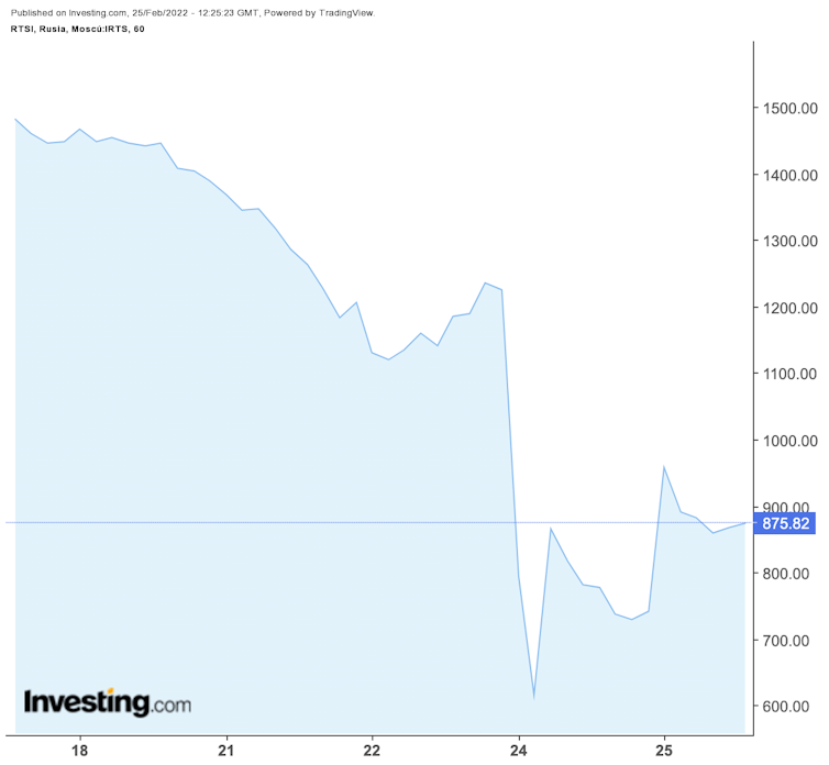 Evolución del RTS Index (Rusia) entre el 18 y el 25 de febrero de 2022. Fuente: Investing.com