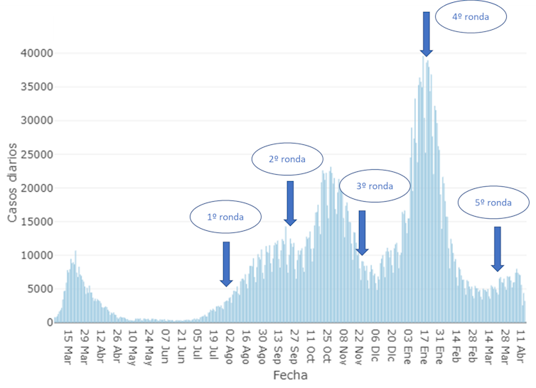 La intención de vacunarse ha cambiado mucho según ha ido progresando la pandemia. Si en julio de 2020 un 70 % estaba de acuerdo en vacunarse, este número fue bajando hasta cerca del 40 % en noviembre de 2021, para subir al 72-74 % después de la cuarta ola de la pandemia, coincidiendo con el inicio de la campaña de vacunación.